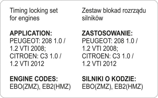 Zestaw blokad rozrządu do silników benzynowych samochodów marki Citroen i Peugeot.