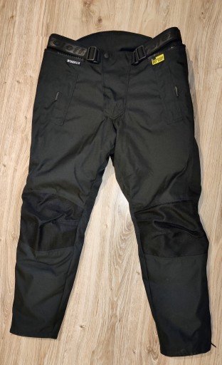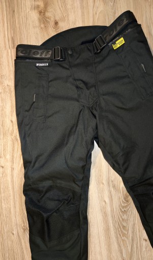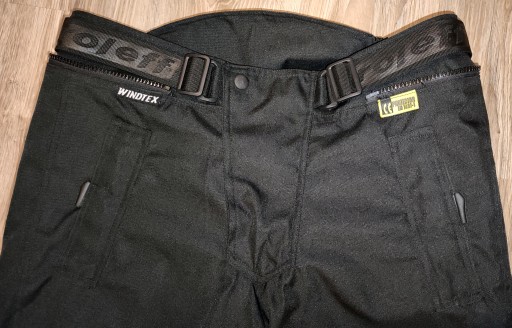 Roleff Spodnie motocyklowe w b.dobrym stanie. Kolor czarny. Posiadają wymienne protektory kolan, zamek w pasie do dopięcia kurtki. Posiadają dodatkową odpinaną cieplejszą podpinkę Wymiary zewnętrzne : długość-110cm, pas-104cm krok-78cm Rozmiar na metce (XXL)