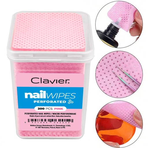 Waciki perforowane są niezastąpione podczas stylizacji paznokci. Dzięki nim można precyzyjnie usunąć resztki lakieru, odtłuścić płytkę paznokcia czy nałożyć preparaty pielęgnacyjne.