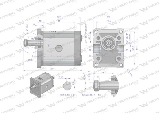 Pompa hydrauliczna zębata 28.0cm3 obroty prawe max.160 bar Waryński