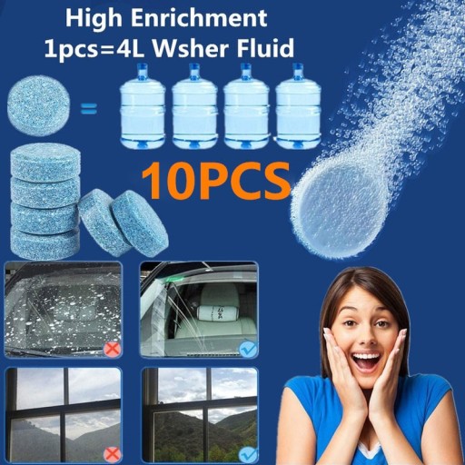 Многофункциональные шипучие таблетки для мытья стекол автомобиля.