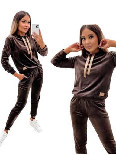 Piękny zestaw w skład którego wchodzi klasyczna bluza wciągana przez głowę i spodnie z wyższym stanem.