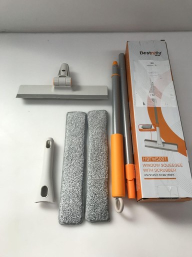 Narzędzie do czyszczenia szyb okiennych składa się z miękkiego, gumowego skrobaka i skrobaka z mikrofibry. Nadaje się do czyszczenia szyb samochodowych w gospodarstwie domowym, czyszczenia kabin prysznicowych i czyszczenia szyb przednich samochodów, autobusów i SUV-ów, teleskopowy uchwyt o długości 48": narzędzie do czyszczenia okien ma drążek przedłużający, który można przedłużyć od 80 do 120 cm.