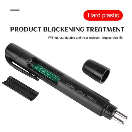 1, praktyczny tester płynu hamulcowego: szybko sprawdź stan płynu hamulcowego w samochodzie i przypomnij o konieczności wymiany płynu hamulcowego na czas, aby zapewnić sobie większy komfort jazdy. 2, prosta konstrukcja: 5 wskaźników LED pokazuje procent wody w płynie hamulcowym. Pióro do testowania płynu hamulcowego jest kompaktowe i przenośne, z antypoślizgowym materiałem i niklowaną metalową sondą. 3, szerokie zastosowanie: obsługuje większość pojazdów za pomocą kompatybilnego płynu hamulcowego DOT3 DOT4. Ten tester płynu hamulcowego przeznaczony jest zarówno dla profesjonalistów, jak i amatorów, ma szerokie zastosowanie w indywidualnych zakładach naprawczych i warsztatach dealerskich. 4, Łatwa obsługa: zainstaluj baterię 1 * AAA 1,5 V (brak w zestawie), naciśnij przycisk na górze, zanurz sondę w płynie hamulcowym, a wynik testu zostanie wskazany przez diody LED w ciągu kilku sekund. Pióro testera płynu hamulcowego wyłączy się automatycznie po około 15 sekundach bezczynności. 5. UWAGA: Jeżeli po naciśnięciu przycisku zielona dioda LED nie świeci się, należy wymienić baterię. Po każdym użyciu wyczyść sondę testową wodą z kranu.