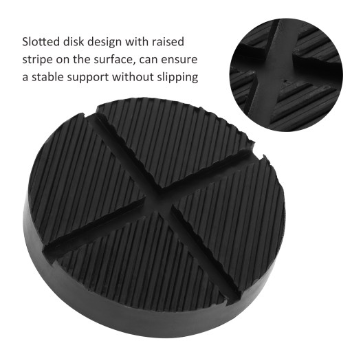 Typ artykułu: Podkładka pod podnośnik samochodowy Materiał: Guma Średnica: Ok. 12,5 cm/4,92 cala Grubość: Ok. 2,6 cm/1,02 cala Dopasowanie: Uniwersalna do podnośnika o średnicy 125 mm/4,92 cala