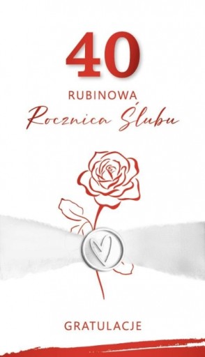 KARNET ROCZNICA ŚLUBU 40 - RUBINOWA