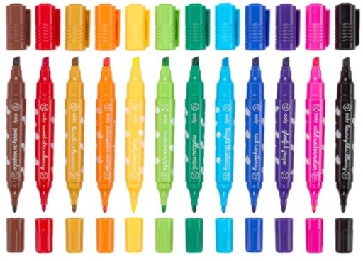 Te słodkie, pachnące markery są zaprojektowane tak, aby były łatwe do utrzymania dla małych rączek. Każdy z nich ma dwie końcówki: klasyczną i szerszą, ściętą na płasko. Z łatwością narysujecie nimi zarówno cienkie, jak i szerokie linie. To nie wszystko! Każdy z nich ma inny zapach, a dzięki 12 żywym, jasnym kolorom możecie przenieść na papier wszystko, co tylko zechcecie! I bez obaw, te flamastry są zmywalne!