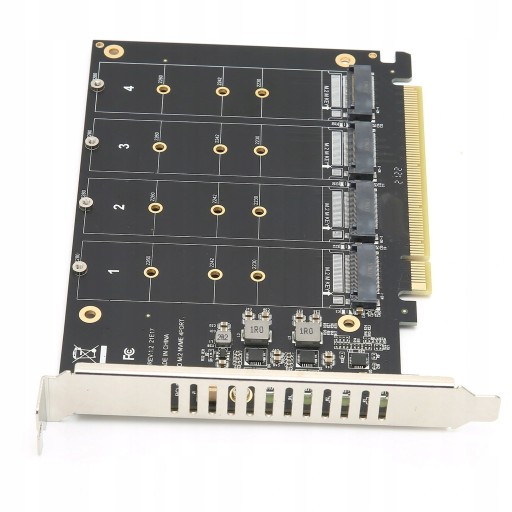 1. Ta karta adaptera ma 4 karty rozszerzeń, które mogą jednocześnie rozszerzać sygnały o pełnej prędkości 4 x 32 Gb/s.