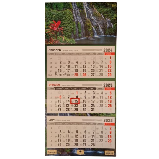 KALENDARZ TRÓJDZIELNY ŚCIENNY 2025 ROK WODOSPAD