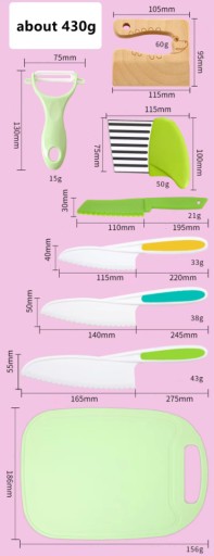 - Bezpieczny w użyciu: zestaw do przygotowywania posiłków przez dzieci wykorzystuje wysokiej jakości drewno i tworzywo sztuczne, dlatego jest trwały, bezpieczny, gładki, bezzapachowy, przyjazny dla środowiska i nie pęka.