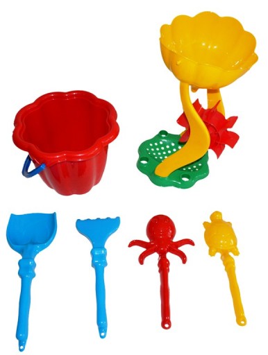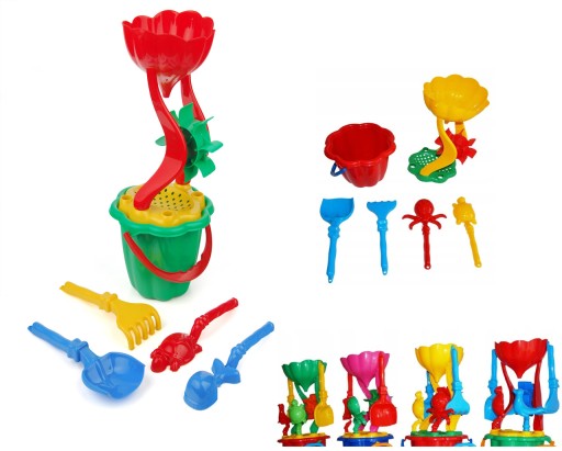 Zestaw do piasku wiaderko z młynkiem foremkami grabkami łopatką Produkt PL