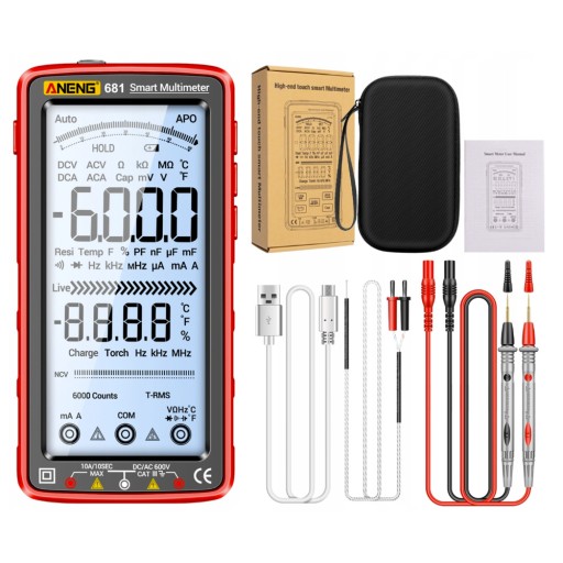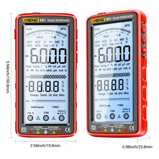 - Wielofunkcyjny pomiar, może mierzyć napięcie AC, napięcie DC, rezystancję, diodę, pojemność, brzęczyk, prąd DC, prąd AC, temperaturę.