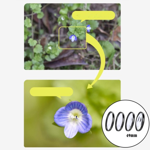 Jest to proste narzędzie. Łatwy w użyciu, nie ma potrzeby kompensowania ekspozycji. Wykonane z optycznego szkła powiększającego, które zmniejsza odległość ogniskowania obiektywu z małej odległości.