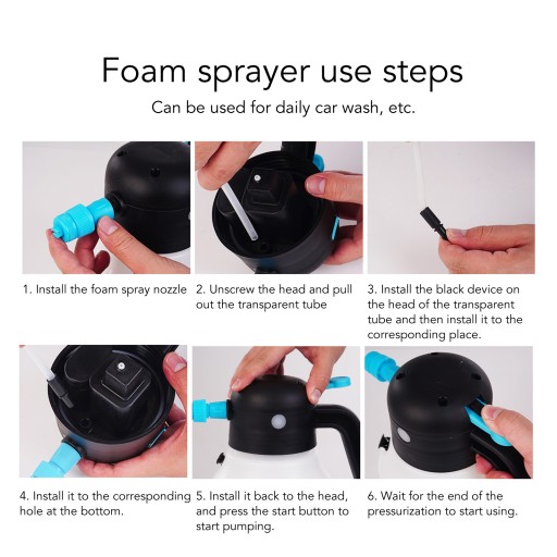 Cecha: 1. BEZPRZEWODOWA KONSTRUKCJA: Urządzenie do natryskiwania piany ma konstrukcję bezprzewodową, co eliminuje żmudne etapy podłączania przewodów, dzięki czemu czyszczenie i podlewanie jest wygodniejsze i szybsze.
