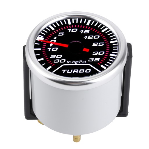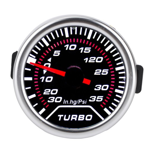 Cecha: 1. Wskaźnik doładowania turbosprężarki z zakresem pomiarowym 35PSI może dokładnie pokazywać ciśnienie turbosprężarki samochodowej.