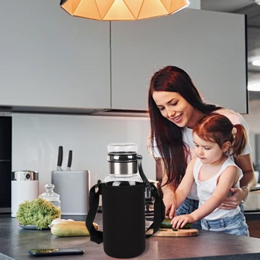 ✅【PRZEMYŚLANY PROJEKT】Nasza szklana butelka jest zarówno praktyczna, jak i stylowa, wyposażona w ochronny rękaw z neoprenu i sitko ze stali nierdzewnej.