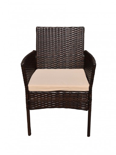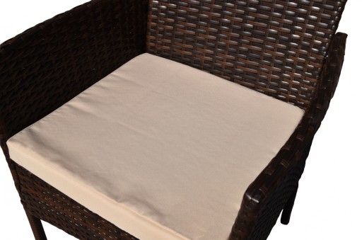 W Zestawie:2x krzesła technorattanowe1x kanapa technorattanowa1x stolik kawowy ze szkłem hartowanym2x poduszka do krzesła1x poduszka do kanapyelementy montażowe