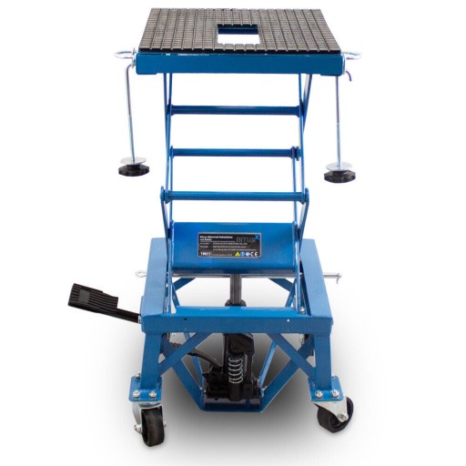 Ten podnośnik nożycowy to idealne narzędzie do prac konserwacyjnych przy motorze. Dzięki swojej solidnej konstrukcji i wytrzymałemu materiałowi jest w stanie unieść obciążenie o masie do 135 kg. Nie musisz się martwić o bezpieczeństwo - stalowa konstrukcja zapewnia stabilność i trwałość. Podnośnik został zaprojektowany tak, aby zapewnić maksymalną wygodę użytkowania. Jego wymiary (48 x 42 x 35 cm) sprawiają, że można go łatwo przechowywać a 4 obrotowe kółka ułatwiają jego transportowanie bez dźwigania. Dodatkową zaleta jest możliwość zablokowania 2 kół. Minimalna wysokość wynosi tylko 35 cm pozwala na łatwe umieszczenie podnośnika pod pojazdem, nawet gdy ma niski prześwit. Dzięki hydraulice ten podnośnik umożliwia szybką i precyzyjną regulację wysokości od minimalnej do maksymalnej wynoszącej aż 87 cm. Wystarczy kilka ruchów dźwignią hydrauliczną, aby dostosować wysokość do potrzeb naprawy lub serwisowania pojazdu. Podnośnik nożycowy został wykonany z wysokiej jakości stali, która zapewnia stabilność i trwałość nawet przy dużym obciążeniu. Niebieski kolor nadaje mu atrakcyjny wygląd i sprawia, że będzie on doskonale prezentować się w Twoim warsztacie.