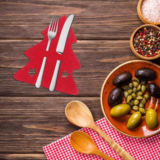 ✅ Etui na sztućce w kształcie choinki sprawia, że torby na zastawę stołową są piękniejsze i nadają im świątecznego charakteru.