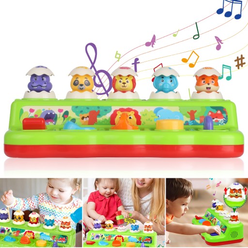- 🎍Ulepszona wyskakująca zabawka Interaktywna wyskakująca zabawka zawiera dwa różne tryby zabawy. Tryb 1: Po naciśnięciu przycisku pojawiają się ukryte zwierzęta, którym towarzyszy muzyka/odgłosy zwierząt. Tryb 2: Podążaj za ruchomymi przyciskami świetlnymi, aby znaleźć ukryte zwierzęta.