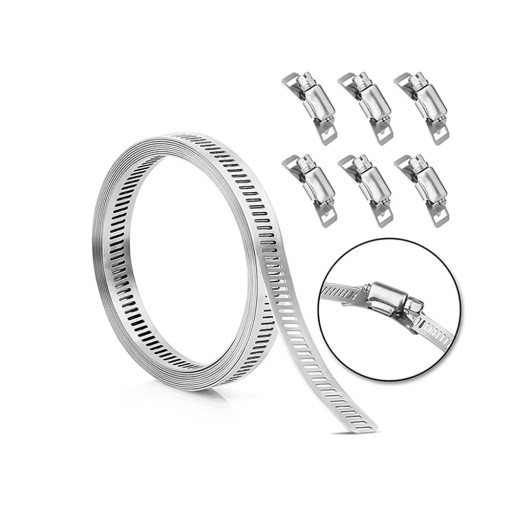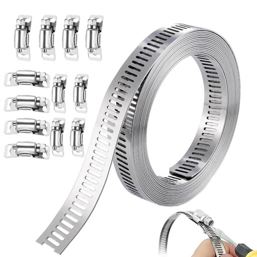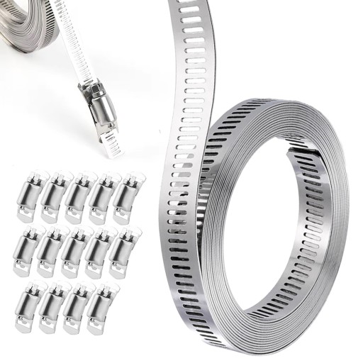 ЛЕНТА ЗАЖИМНАЯ ИЗ НЕРЖАВЕЮЩЕЙ СТАЛИ 3м х 12,6мм + ЗАЖИМЫ 12шт.