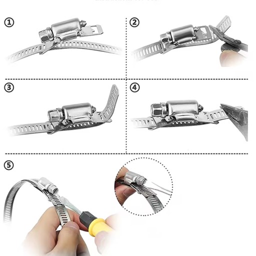 ✅Regulowana obejma do węża DIY: najpierw zmierz obwód rury, odłam wąż nożyczkami lub szczypcami i zamocuj łączniki. Po przełożeniu węża przez obejmę należy wyregulować rozmiar i dokręcić śrubę ustalającą za pomocą śrubokręta.
