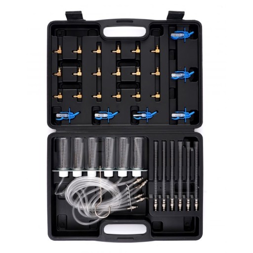 Zestaw końcówek pozwala na pomiary układów wtryskowych firmy Bosch, Siemens, Denso, Delphi w silnikach do sześciu cylindrów.