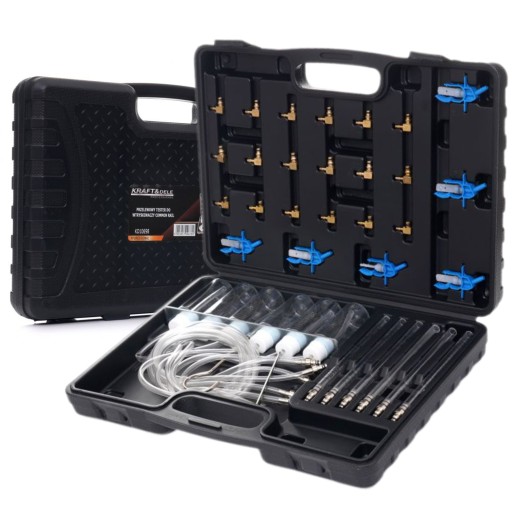 Niezbędny tester Common Rail marki Kraft&Dele przeznaczony do diagnostyki wtryskiwaczy w silnikach Diesla maksymalnie 6-cylindrowych. Tester wyposażony w system zasilania paliwem Common Rain który, pozwala na szybką diagnozę na podstawie pomiaru ilości paliwa odprowadzonego na przelewie wtryskiwaczy.