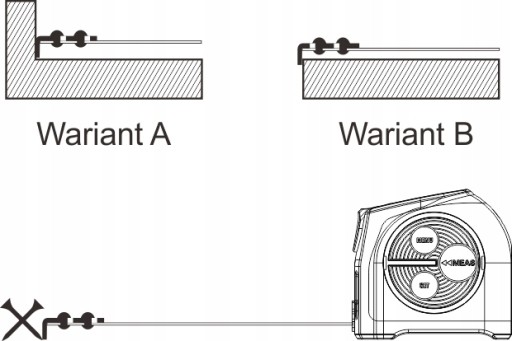 - Wariant A: z powodu magnesu, haczyk zaczepiamy do końca powierzchni