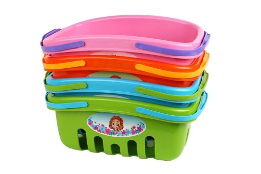 Koszyk swoim designem przypomina prawdziwy koszyk sklepowy. Posiada on dwie rączki, więc trzymanie go jest bardzo proste i nie wypada dziecku. Kosz może służyć jako rekwizyt w wielu typach zabaw, a także może pomóc w przenoszeniu rzeczy z domu na zewnątrz i z powrotem. Dzięki najwyższej jakości materiałom, z których jest stworzony, przetrwa wszelkie warunki i można brać go ze sobą na spacer w poszukiwaniu ciekawych przedmiotów do zabrania do domu. Kolory są żywe, więc zawsze będzie zauważony, a naklejka przyciąga wzrok. Wybrać się można również do prawdziwego sklepu z rodzicami i pomóc im w noszeniu zakupów. Dzięki temu zabawka nauczy dziecko wykonywania codziennych czynności i staną się one atrakcyjne.