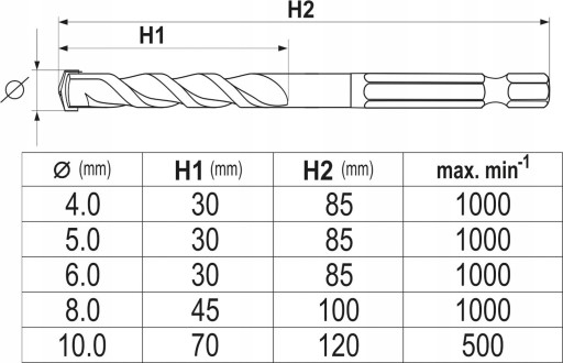 - Maks. średnica wiercenia - mur (mm) 18