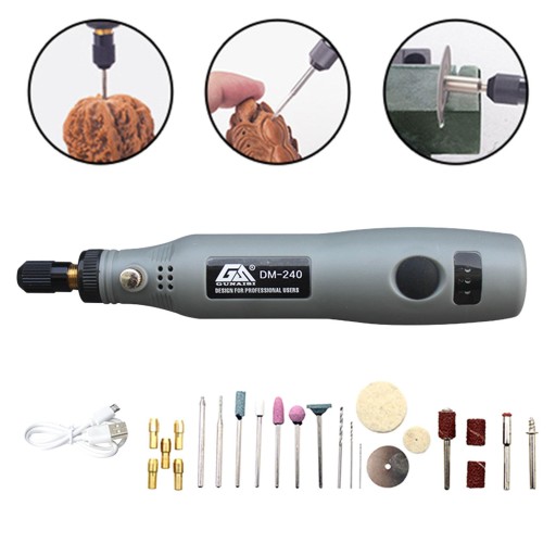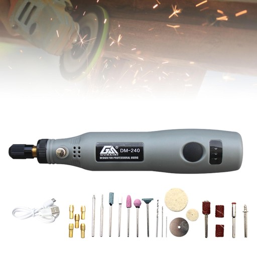 [Funkcje]: ładowanie przez USB, cicha praca. 3 opcje prędkości 6000/9000/15000 r/min trzy biegi, korpus wykonany jest ze stopu, dobre odprowadzanie ciepła, dzięki czemu twoja grafika majsterkowanie.