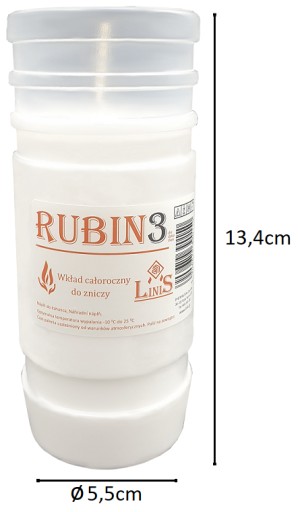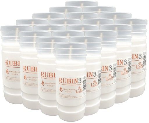 Seria Rubin jest to wersja ekonomiczna która charakteryzuje się najlepszą ceną do jakości wkładów czyli czasu palenia oraz wysokości produktu. Wkłady wypalają się dużym płomieniem który jest zawsze widoczny i jasny, pięknie oświetlając groby naszych bliskich. Dzięki odpowiedniemu doborowi knota oraz mieszanki parafinowej nasze wkłady nie kopcą i nie powodują brudzenia wnętrza znicza. Ich estetyczne wykonanie sprawia że pasują na każdą okoliczność do każdego znicza.
