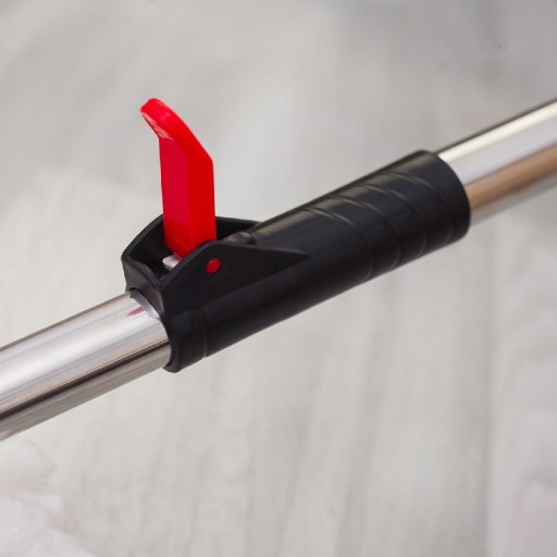 Mop posiada teleskopowy kij o regulowanej długości od 82 do 111 cm, co umożliwia dostosowanie jego długości do wzrostu użytkownika. Ergonomiczny kształt kijka zapewnia wygodę podczas sprzątania, redukując zmęczenie rąk i pleców. Dzięki temu sprzątanie staje się mniej męczące i bardziej komfortowe.