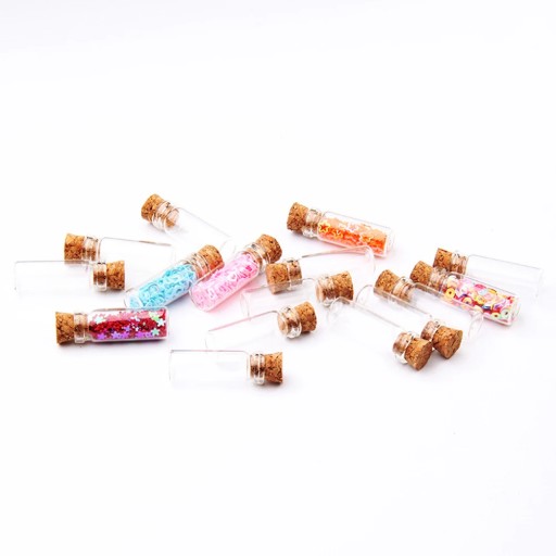 Jest to opakowanie mini szklanej butelki z drewnianą zatyczką korkową, którą można wypełnić wiadomością, potpourri, galaretowymi kulkami, akrylowymi skałami i kamieniami szlachetnymi, płatkami kwiatów, ozdobić wstążką lub po prostu wypełnić piaskiem, a także dobre do majsterkowania jako naszyjnik wisiorek, dryfujące butelki życzeń lub butelki perfum. Poza tym nadaje się do dekoracji lub wysłania jako prezent dla przyjaciół.