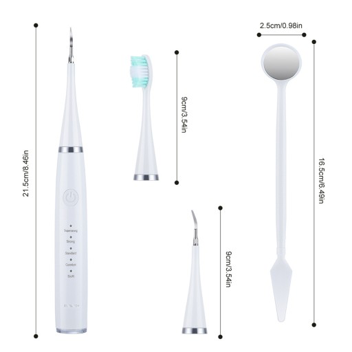 - 3. Ultrasonic Tooth Cleaner: Dental plaque remover tool using real sonic high-frequency vibration technology. The vibration frequency can reach 31000 times/min, which can effectively and quickly remove dental plaque, calculus, tartar, and stains.