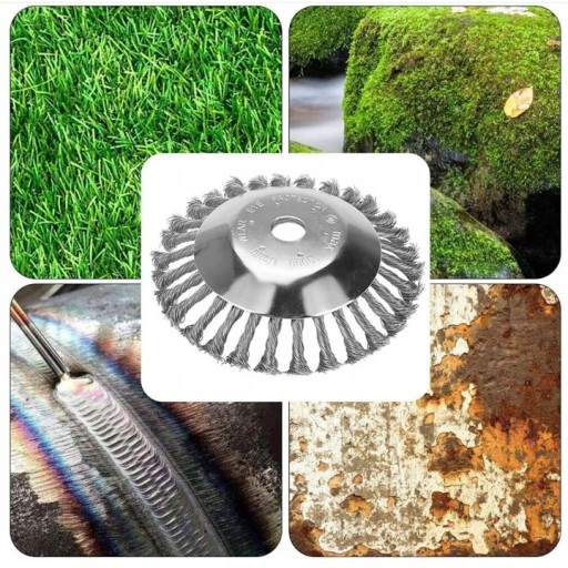 Mocna agresywna tarcza szczotkowa wykonana jest z wysokiej jakości stali odpornej na obciążenia siły odśrodkowej oraz bardzo wysokie obroty dochodzące nawet do 10tys/min. Może być stosowana bezpośrednio do urządzeń typu kosa, lub podkaszarek spalinowych .