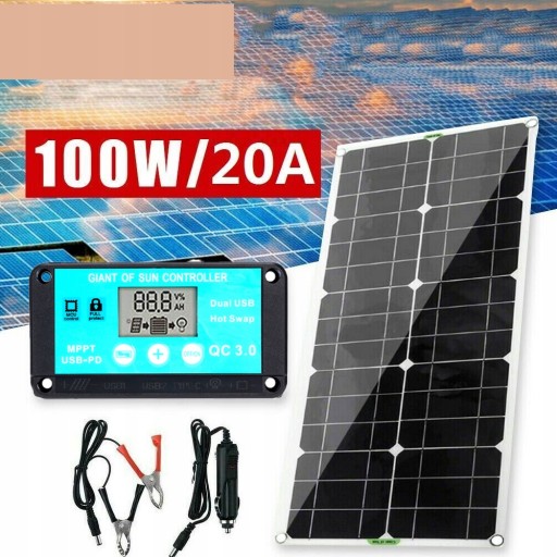 ✔️Nazwa: panel słoneczny 100 W 1 ładowarka samochodowa 2 zaciski krokodylkowe 4 przyssawki kontroler słoneczny