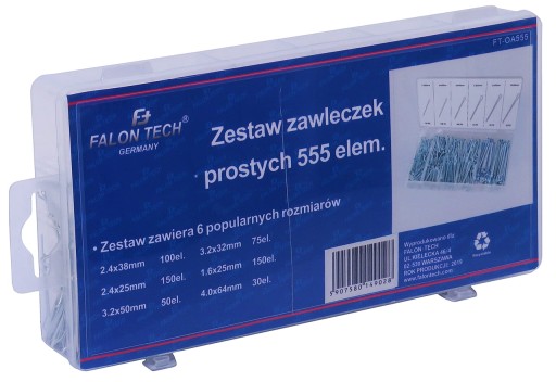 Zestaw zawleczek jest pakowany w wygodnym, kompaktowym pudełku, co ułatwia przechowywanie i transport.
