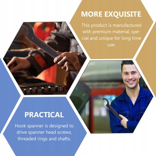 Klucz hakowy przeznaczony jest do wkręcania śrub z łbem płaskim, pierścieni gwintowanych i wałków.