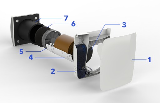 Kierunek przepływu zmienia się co 60 s. dzięki czemu skutecznie usuwa nadmiar wilgoci i kontroluje jej poziom w pomieszczeniu