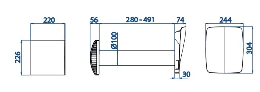 Настенный рекуператор KERS+ 25, пульт дистанционного управления 100 мм, датчик влажности 25 м3/ч + WiFi