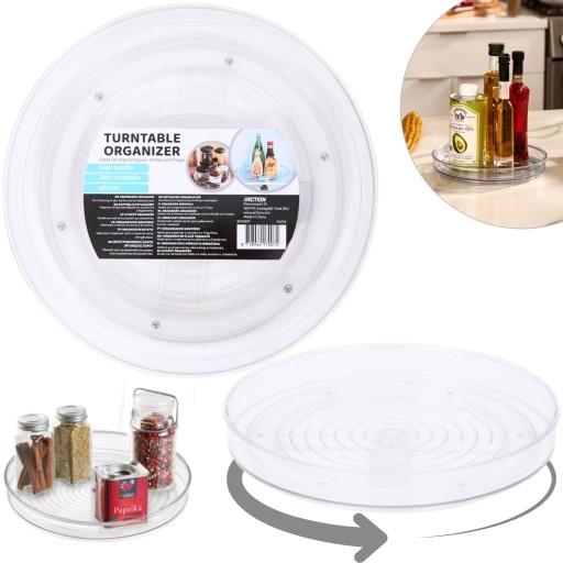 Taca Obrotowa - Organizacja w szafce i lodówce: Zastosowanie obrotowego organizera do szafki - półki zapewnia wygodę w przechowywaniu i dostępie do produktów.