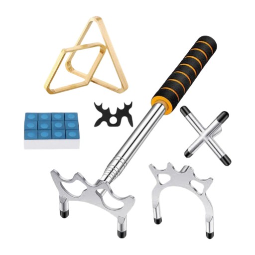[Kompleksowy zestaw akcesoriów bilardowych]: Każdy pakiet zawiera 1 wysuwany kij bilardowy, 4 zdejmowane główki mostka, 1 stojak trójkątny, 1 stojak w kształcie rombu, 12 kredek do kijów bilardowych, co zwiększa funkcjonalność pokoju gier lub baru.
