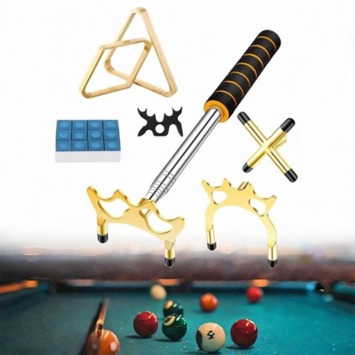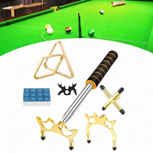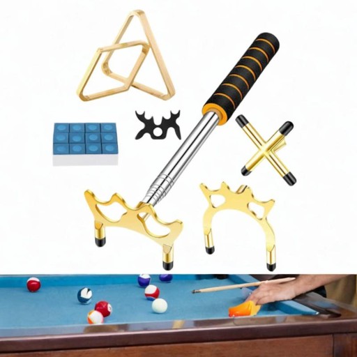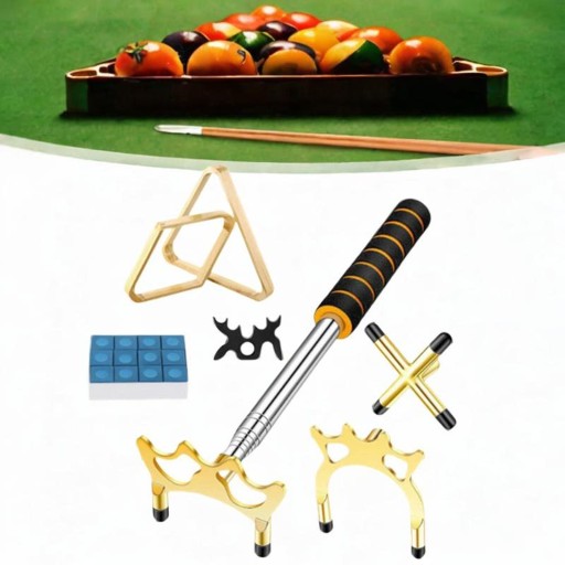 [Kompleksowy zestaw akcesoriów bilardowych]: Każdy pakiet zawiera 1 wysuwany kij bilardowy, 4 zdejmowane główki mostka, 1 stojak trójkątny, 1 stojak w kształcie rombu, 12 kredek do kijów bilardowych, co zwiększa funkcjonalność pokoju gier lub baru.