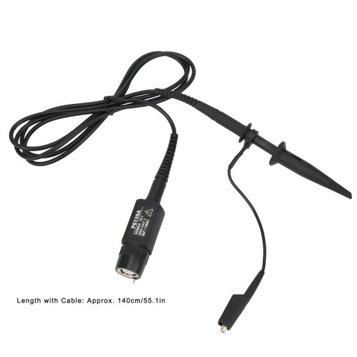 Model P-6139A Pasmo 500MHZ Impedancja i pojemność wejściowa 10MΩ±2% 9F 10X Współczynnik tłumienia 10:1 Czas narastania <700Ps Maksymalne napięcie wejściowe X10: 300V Zakres kompensacji CA TII 5-50PF Długość z kablem Ok. 140 cm/55,1 cala Środowisko pracy 0-50 ℃ 0-80% RH Środowisko przechowywania -20-75 ℃ 0-90% RH