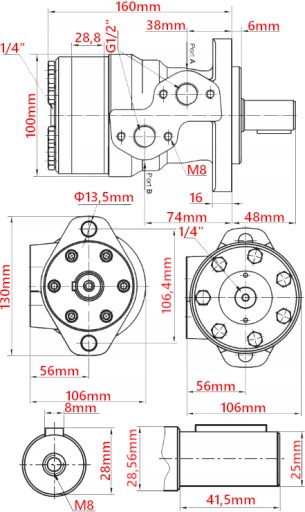 Wzmocniony silnik hydrauliczny grupy 2 160cm3