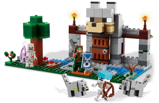 Dzieci zbudują bazę tresera wilków z wielką wilczą głową nad wejściem, a następnie zmienią wyraz pyska z przyjaznego na wściekły. W środku znajduje się stół rzemieślniczy, piec, kowadło i pierwszy w historii zestawów LEGO Minecraft stół kowalski. W skrzyni kryje się sztabka netherytu, z której można zrobić miecz, słodkie jagody i kości do poskramiania wilków.