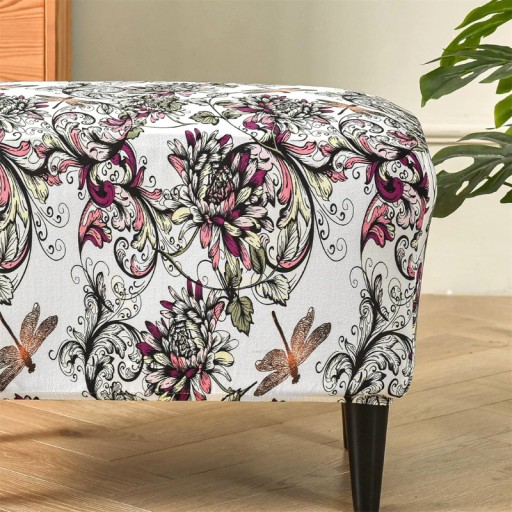 POKROWIEC NA FOTEL USZAK FOTEL SKRZYDŁOWY ELASTYCZNY GŁADKI O WYMIARACH 80 / 90 / 120 CM W KOLORZE BIAŁYM WZÓR KWIATY WAŻKI W ZESTAWIE Z POKROWCEM NA PODNÓŻEK/PUF