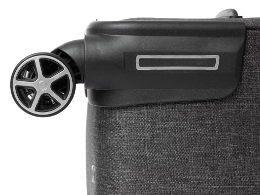 Walizka wyposażona jest w cztery łożyskowane, kauczukowe kółka, które zapewniają cichą i płynną jazdę, nawet po nierównym terenie.